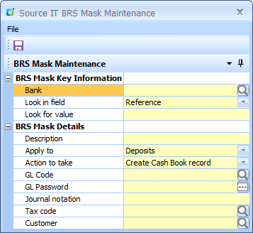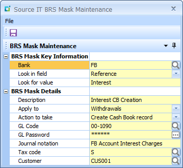 G/L Password: Allows for an associated password to be captured for the entered General Ledger code as required to be used for the Cash Book journal transaction.