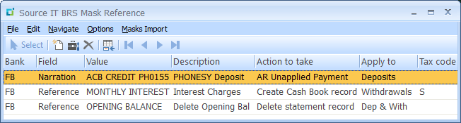 These fields define the rules to be applied once the statement transactions have been identified by the above mask key.