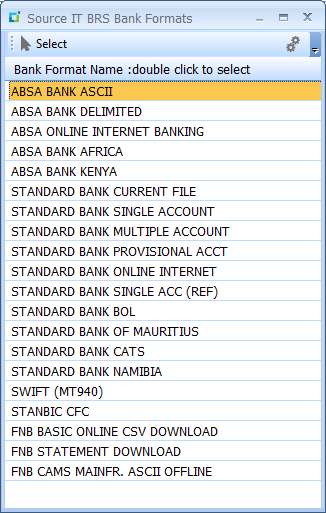 Enter or browse on a SYSPRO Bank and tab/enter off to retrieve information relating to BRS.