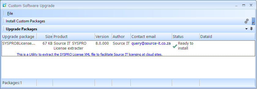 Select the “Install Custom Package” option, it will install and exit SYSPRO